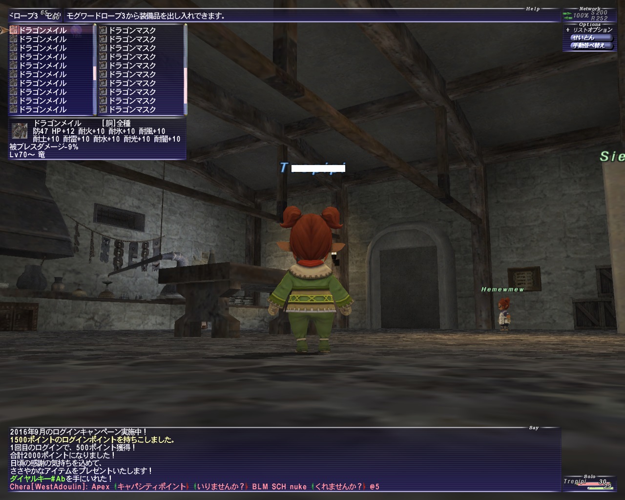 平日はあんまり長時間Inは出来ないので30分ばかり、カニちゃんの倉庫で合成合成